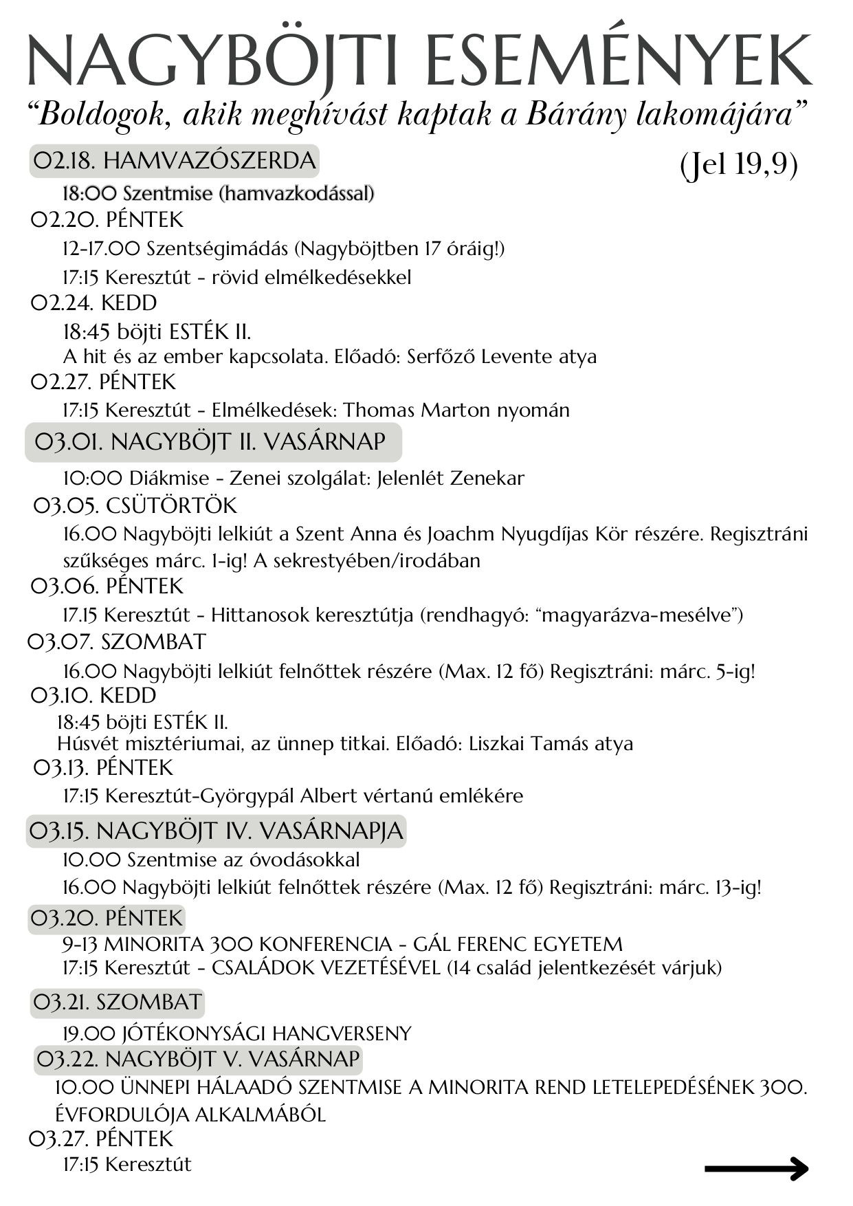 NAGYBÖJTI ESEMÉNYEK